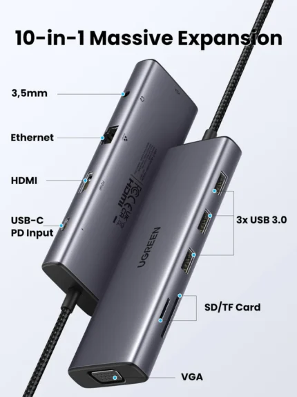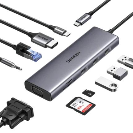 HUB 10 EN 1 4K HDMI VGA RJ45 GIGABIT 100W PD UGREEN CM498 – 15601
